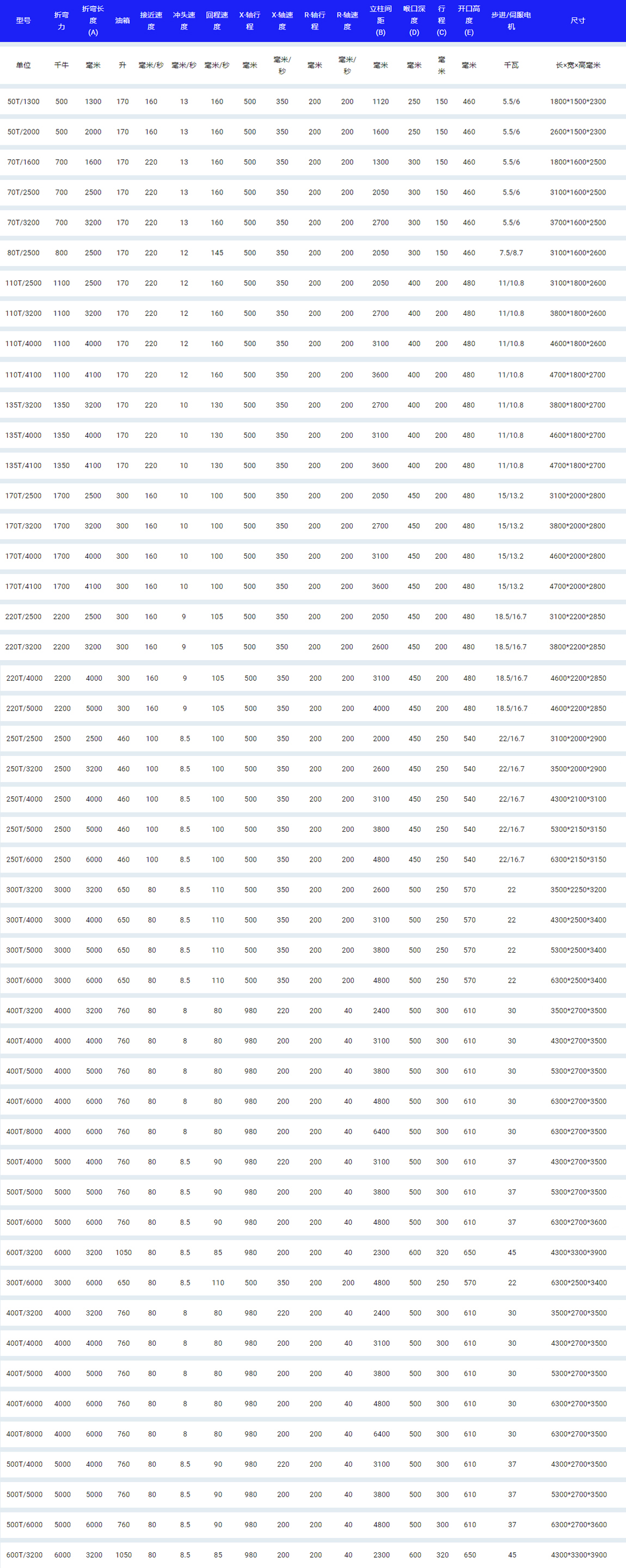 ? 折彎能力:50T-800T